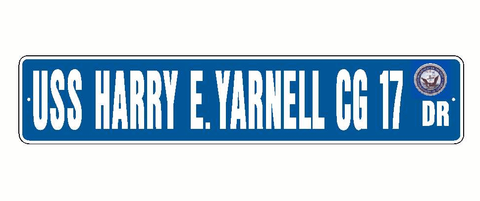 USS HARRY E YARNELL CG 17 Aluminum Street Sign Blue / White 6" x 30" Military USN SS001