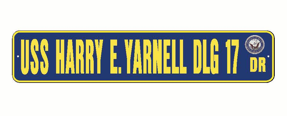 USS HARRY E YARNELL DLG 17 Aluminum Street Sign Navy Blue / Yellow 6" x 30" Military USN SS002