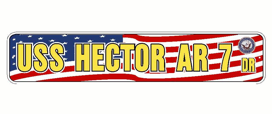 USS HECTOR AR 7 Aluminum Street Sign Red White Blue U.S. Flag 6" x 30" Military USN SS003