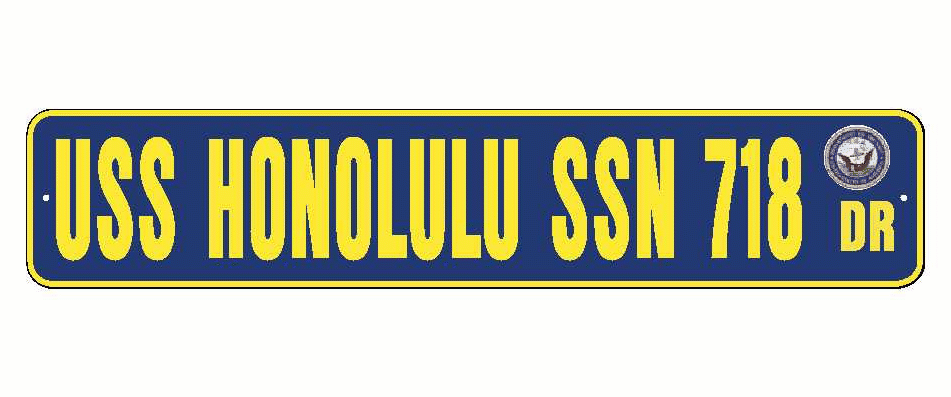 USS HONOLULU SSN 718 Aluminum Street Sign Navy Blue / Yellow 6" x 30" Military USN SS002