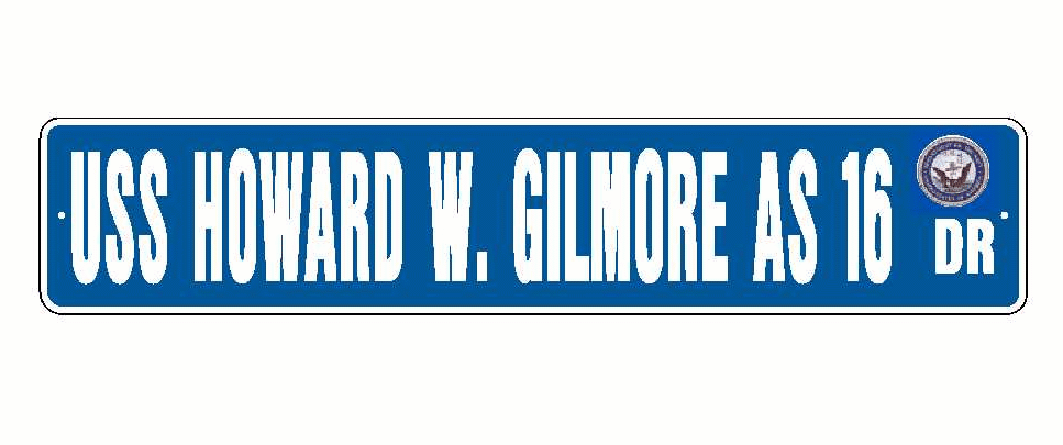 USS HOWARD W GILMORE AS 16 Aluminum Street Sign Blue / White 6" x 30" Military USN SS001