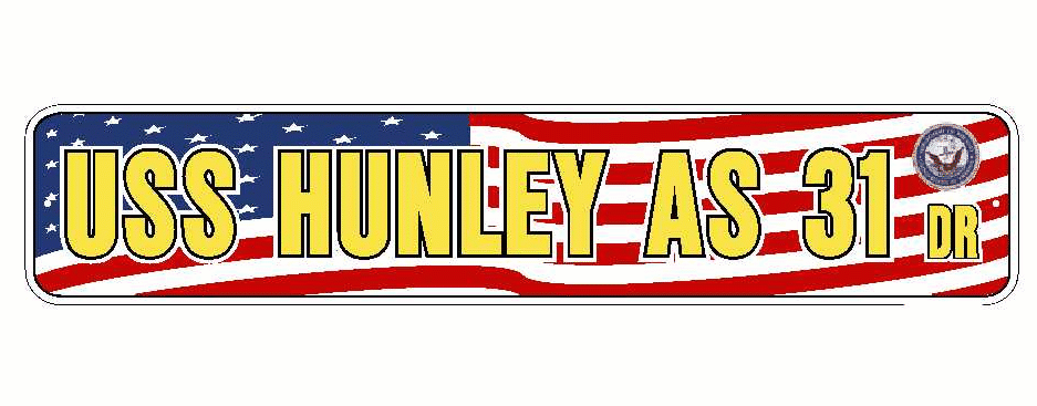 USS HUNLEY AS 31 Aluminum Street Sign Red White Blue U.S. Flag 6" x 30" Military USN SS003