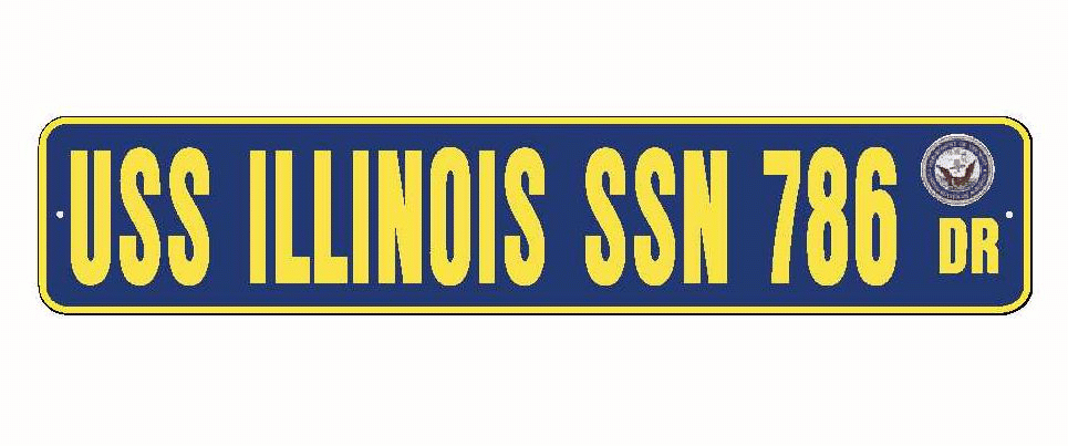 USS ILLINOIS SSN 786 Aluminum Street Sign Navy Blue / Yellow 6" x 30" Military USN SS002