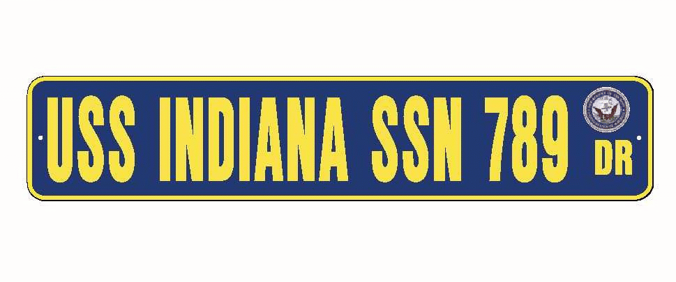 USS INDIANA SSN 789 Aluminum Street Sign Navy Blue / Yellow 6" x 30" Military USN SS002