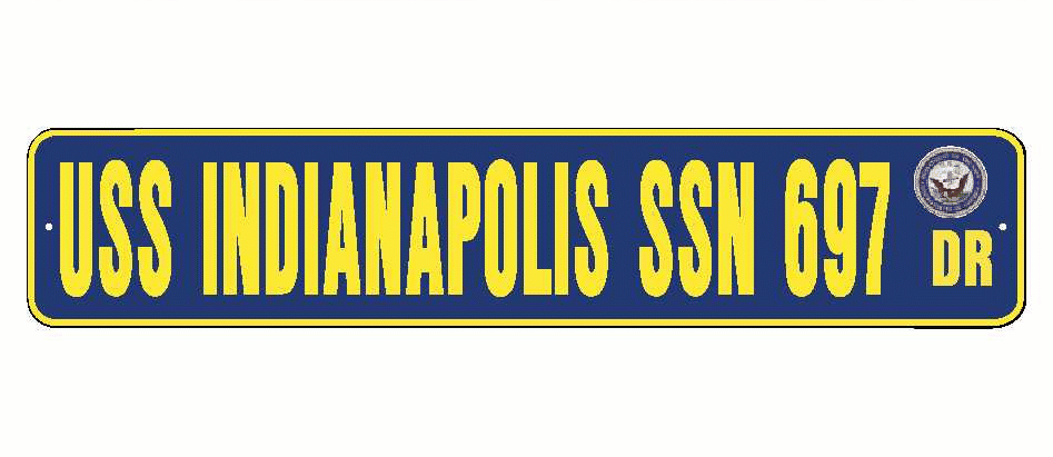 USS INDIANAPOLIS SSN 697 Aluminum Street Sign Navy Blue / Yellow 6" x 30" Military USN SS002