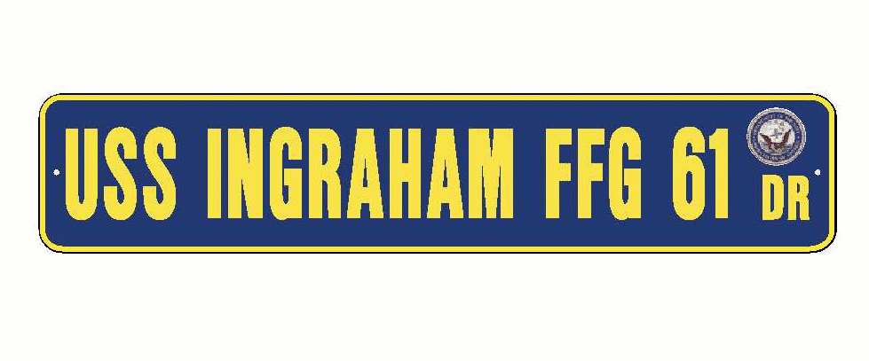 USS INGRAHAM FFG 61 Aluminum Street Sign Navy Blue / Yellow 6" x 30" Military USN SS002