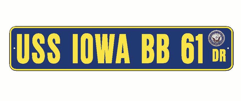 USS IOWA BB 61 Aluminum Street Sign Navy Blue / Yellow 6" x 30" Military USN SS002