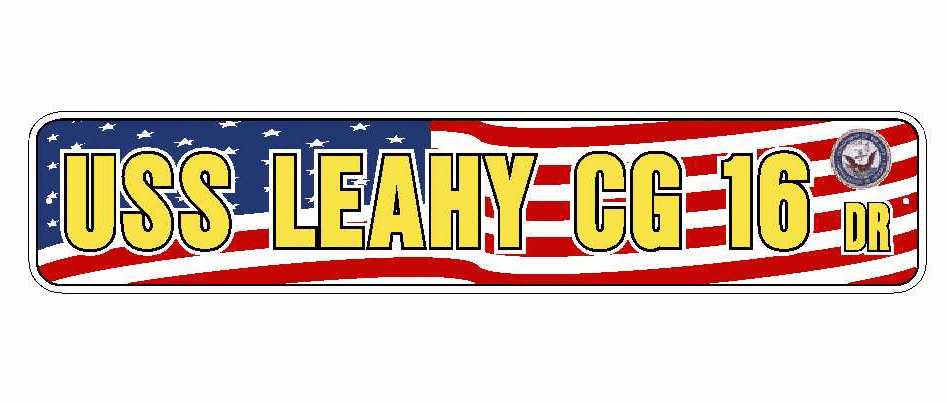 USS LEAHY CG 16 Aluminum Street Sign Red White Blue U.S. Flag 6" x 30" Military USN SS003