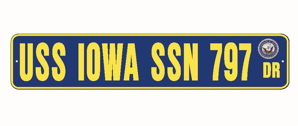 USS IOWA SSN 797 Aluminum Street Sign Navy Blue / Yellow 6" x 30" Military USN SS002