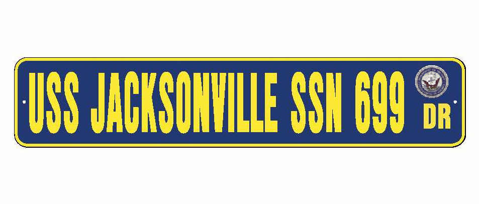 USS JACKSONVILLE SSN 699 Aluminum Street Sign Navy Blue / Yellow 6" x 30" Military USN SS002