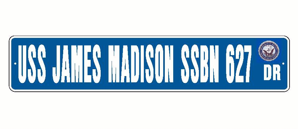 USS JAMES MADISON SSBN 627 Aluminum Street Sign Blue / White 6" x 30" Military USN SS001