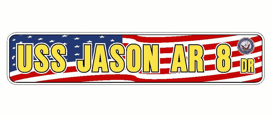 USS JASON AR 8 Aluminum Street Sign Red White Blue U.S. Flag 6" x 30" Military USN SS003