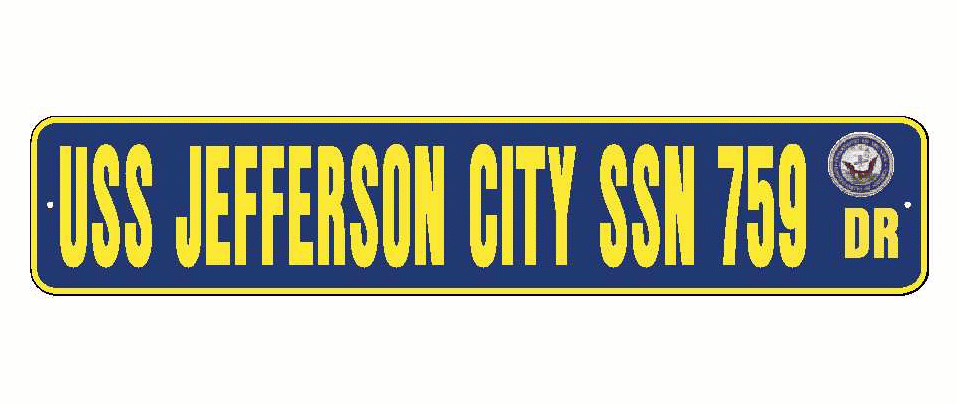USS JEFFERSON CITY SSN 759 Aluminum Street Sign Navy Blue / Yellow 6" x 30" Military USN SS002