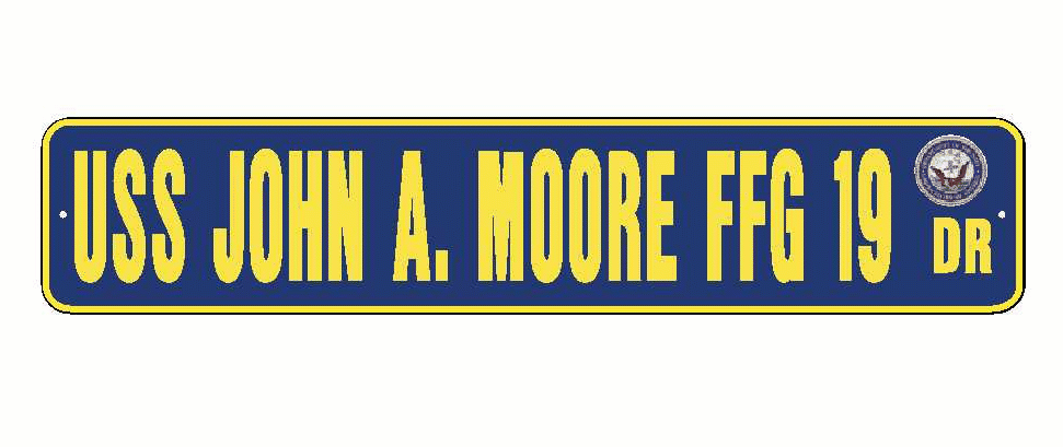 USS JOHN A MOORE FFG 19 Aluminum Street Sign Navy Blue / Yellow 6" x 30" Military USN SS002