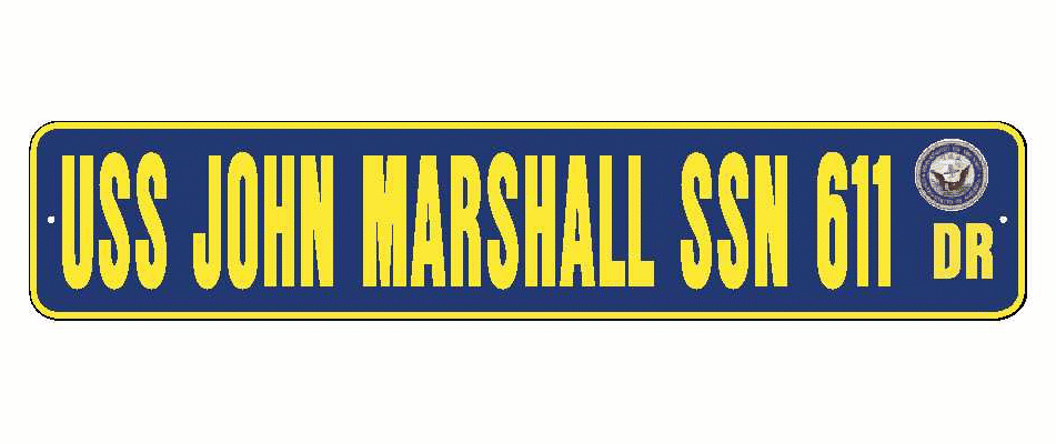 USS JOHN MARSHALL SSN 611 Aluminum Street Sign Navy Blue / Yellow 6" x 30" Military USN SS002