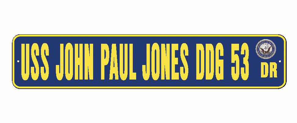 USS JOHN PAUL JONES DDG 53 Aluminum Street Sign Navy Blue / Yellow 6" x 30" Military USN SS002