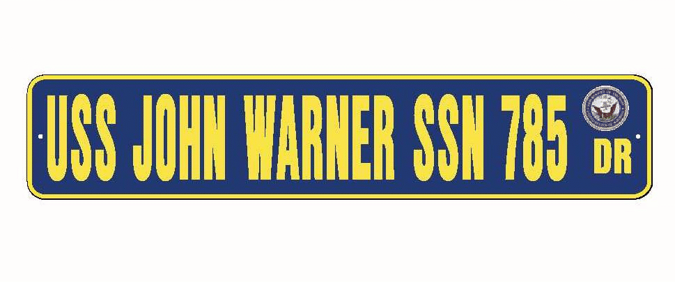 USS JOHN WARNER SSN 785 Aluminum Street Sign Navy Blue / Yellow 6" x 30" Military USN SS002