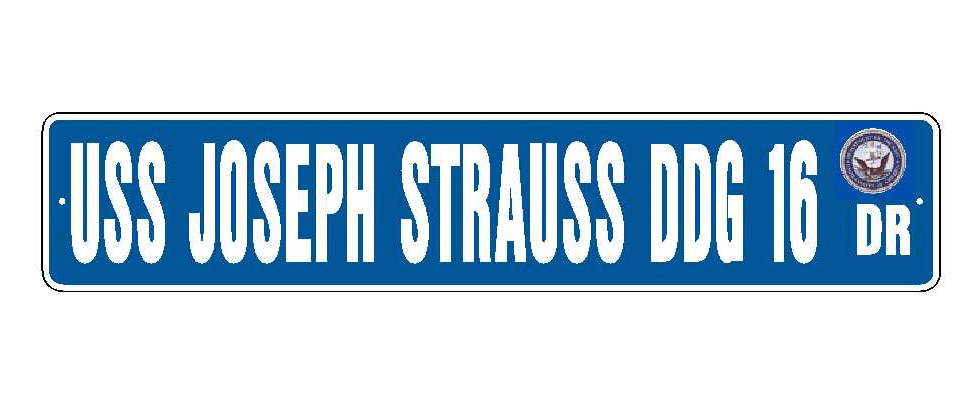 USS JOSEPH STRAUSS DDG 16 Aluminum Street Sign Blue / White 6" x 30" Military USN SS001