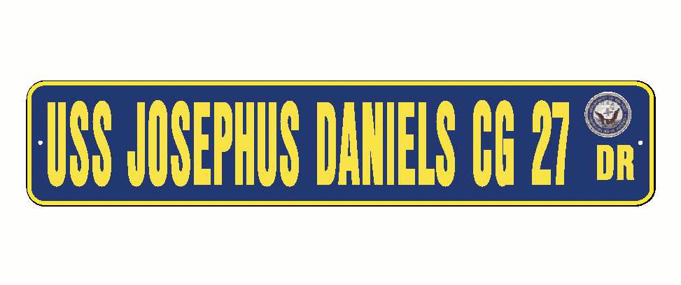 USS JOSEPHUS DANIELS CG 27 Aluminum Street Sign Navy Blue / Yellow 6" x 30" Military USN SS002