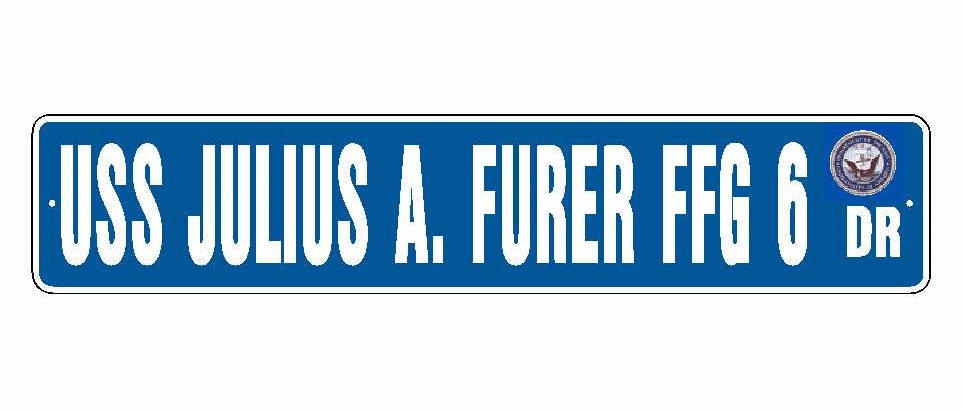 USS JULIUS A. FURER FFG 6 Aluminum Street Sign Blue / White 6" x 30" Military USN SS001