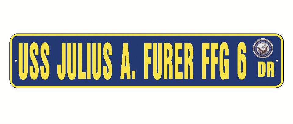 USS JULIUS A. FURER FFG 6 Aluminum Street Sign Navy Blue / Yellow 6" x 30" Military USN SS002
