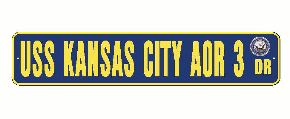 USS KANSAS CITY AOR 3 Aluminum Street Sign Navy Blue / Yellow 6" x 30" Military USN SS002