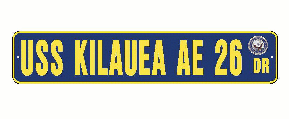 USS KILAUEA AE 26 Aluminum Street Sign Navy Blue / Yellow 6" x 30" Military USN SS002