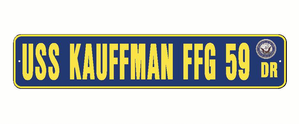 USS KUFFMAN FFG 59 Aluminum Street Sign Navy Blue / Yellow 6" x 30" Military USN SS002