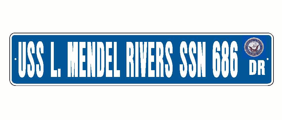 USS L. MENDEL RIVERS SSN 686 Aluminum Street Sign Blue / White 6" x 30" Military USN SS001