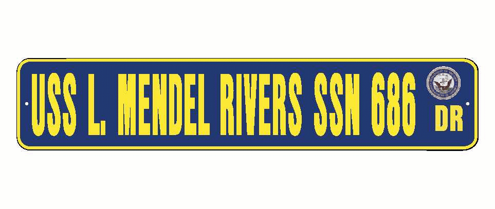 USS L. MENDEL RIVERS SSN 686 Aluminum Street Sign Navy Blue / Yellow 6" x 30" Military USN SS002