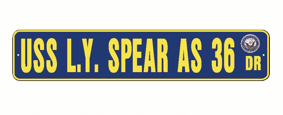 USS L Y SPEAR AS 36 Aluminum Street Sign Navy Blue / Yellow 6" x 30" Military USN SS002