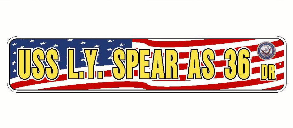 USS L Y SPEAR AS 36 Aluminum Street Sign Red White Blue U.S. Flag 6" x 30" Military USN SS003