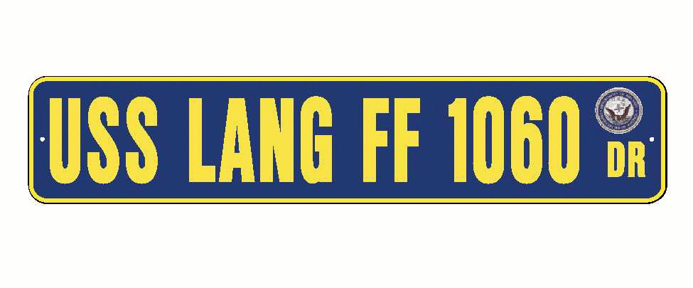 USS LANG FF 1060 Aluminum Street Sign Navy Blue / Yellow 6" x 30" Military USN SS002