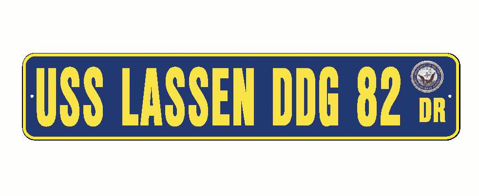 USS LASSEN DDG 82 Aluminum Street Sign Navy Blue / Yellow 6" x 30" Military USN SS002