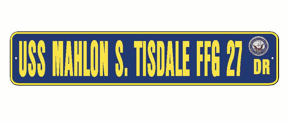 USS MAHLON S TISDALE FFG 27 Aluminum Street Sign Navy Blue / Yellow 6" x 30" Military USN SS002