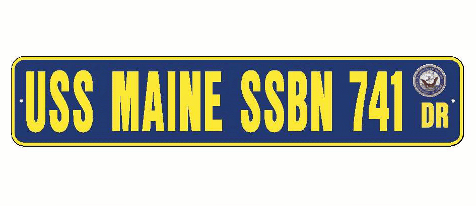 USS MAINE SSBN 741 Aluminum Street Sign Navy Blue / Yellow 6" x 30" Military USN SS002