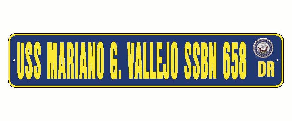 USS MARIANO G. VALLEJO SSBN 658 Aluminum Street Sign Navy Blue / Yellow 6" x 30" Military USN SS002