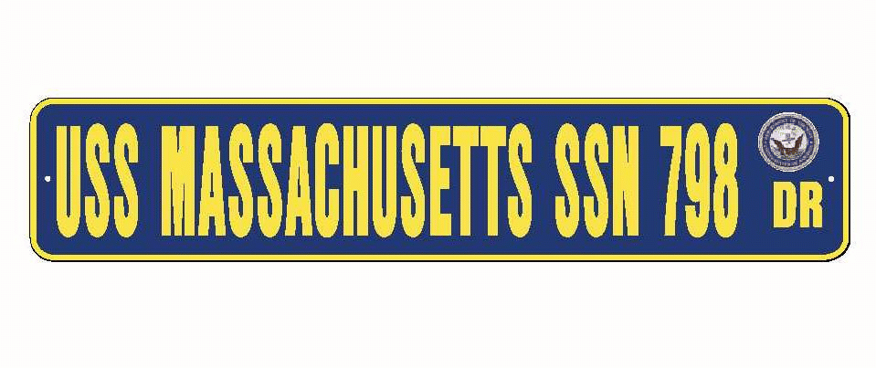 USS MASSACHUSETTS SSN 798 Aluminum Street Sign Navy Blue / Yellow 6" x 30" Military USN SS002