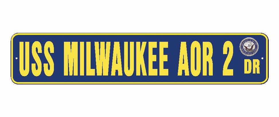 USS MILWAUKEE AOR 2 Aluminum Street Sign Navy Blue / Yellow 6" x 30" Military USN SS002