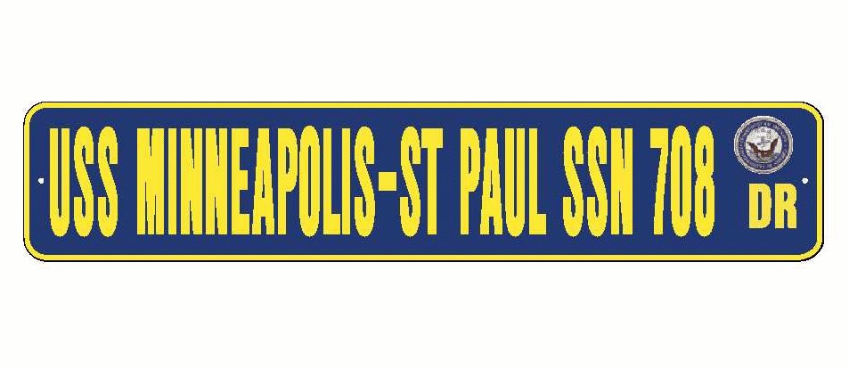 USS MINNEAPOLIS-ST PAUL SSN 708 Aluminum Street Sign Navy Blue / Yellow 6" x 30" Military USN SS002