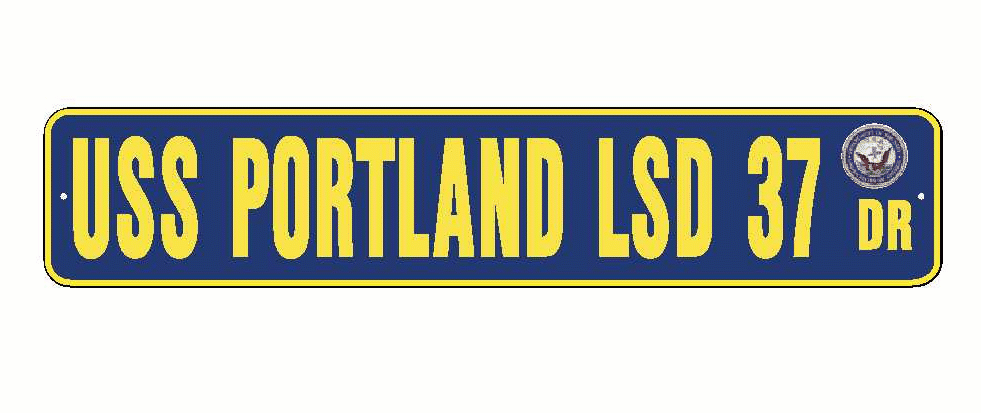 USS PORTLAND LSD 37 Aluminum Street Sign Navy Blue / Yellow 6" x 30" Military USN SS002