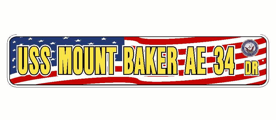USS MOUNT BAKER AE 34 Aluminum Street Sign Red White Blue U.S. Flag 6" x 30" Military USN SS003