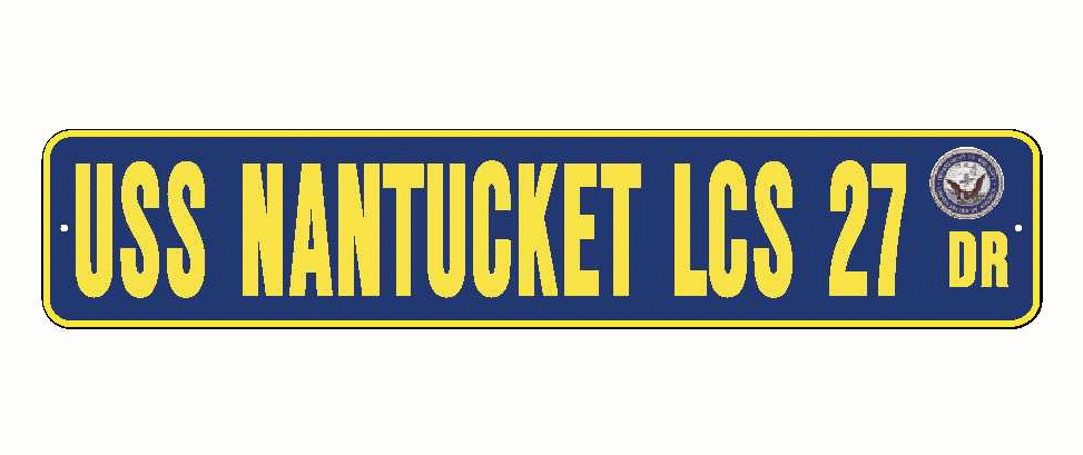 USS NANTUCKET LCS 27 Aluminum Street Sign Navy Blue / Yellow 6" x 30" Military USN SS002