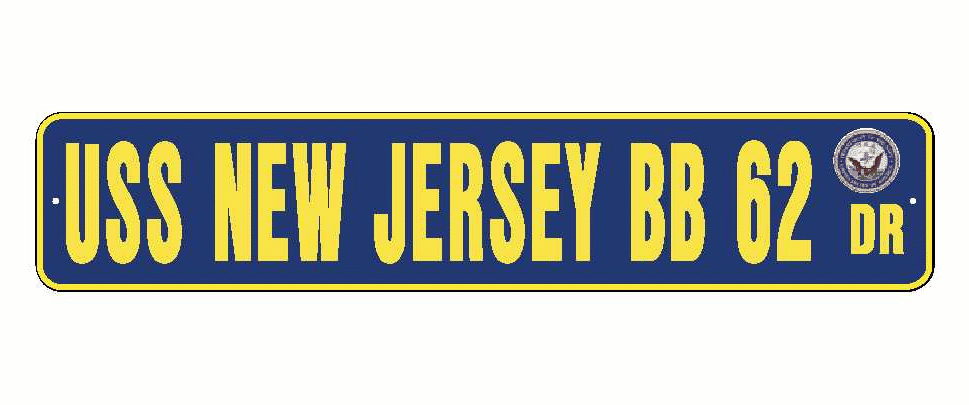 USS NEW JERSEY BB 62 Aluminum Street Sign Navy Blue / Yellow 6" x 30" Military USN SS002
