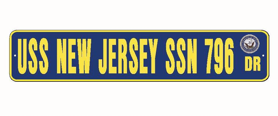 USS NEW JERSEY SSN 796 Aluminum Street Sign Navy Blue / Yellow 6" x 30" Military USN SS002