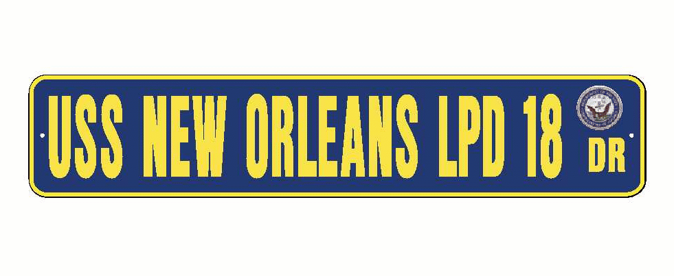 USS NEW ORLEANS LPD 18 Aluminum Street Sign Navy Blue / Yellow 6" x 30" Military USN SS002