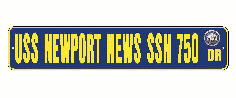 USS NEWPORT NEWS SSN 750 Aluminum Street Sign Navy Blue / Yellow 6" x 30" Military USN SS002
