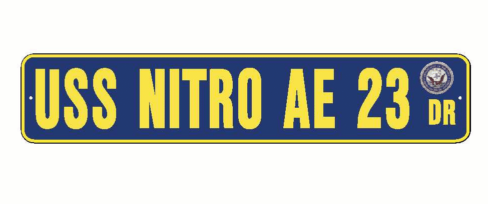USS NITRO AE 23 Aluminum Street Sign Navy Blue / Yellow 6" x 30" Military USN SS002