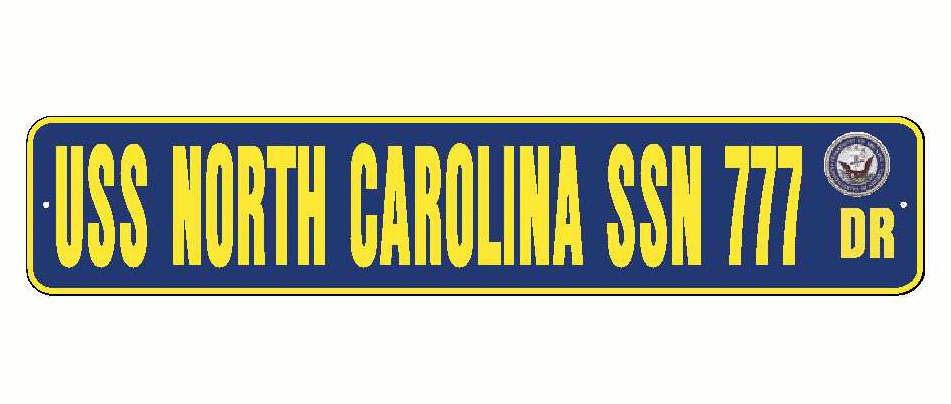 USS NORTH CAROLINA SSN 777 Aluminum Street Sign Navy Blue / Yellow 6" x 30" Military USN SS002