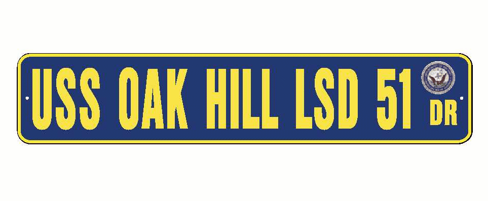 USS OAK HILL LSD 51 Aluminum Street Sign Navy Blue / Yellow 6" x 30" Military USN SS002